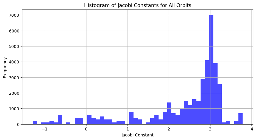 # Plot histogram of Jacobi constants for all orbits