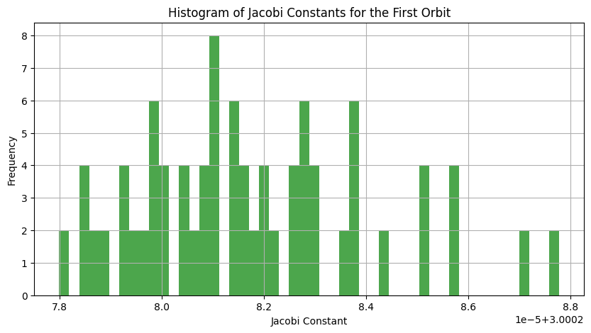 # Plot histogram of Jacobi constants for the first orbit