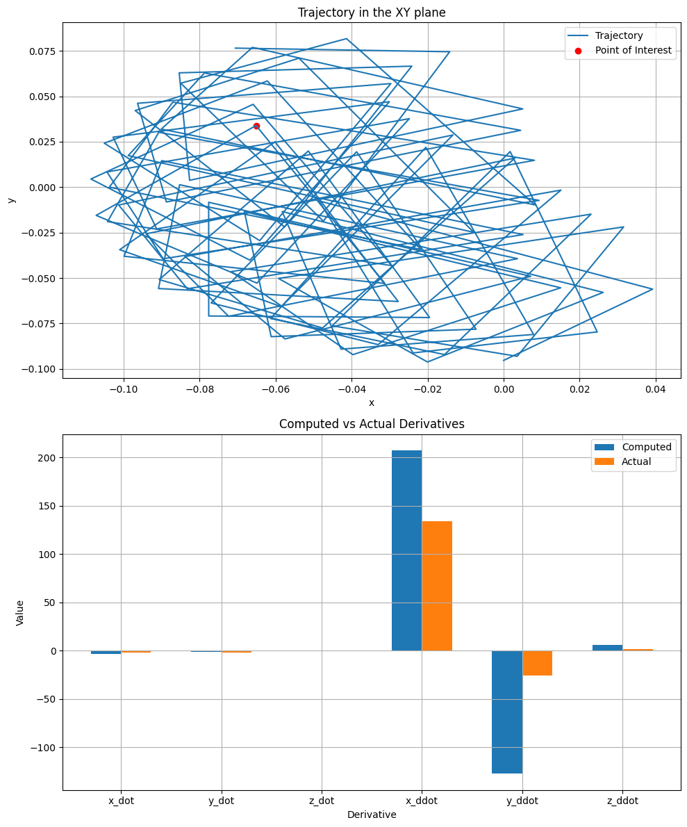 # Visualize the actual trajectory and computed derivatives